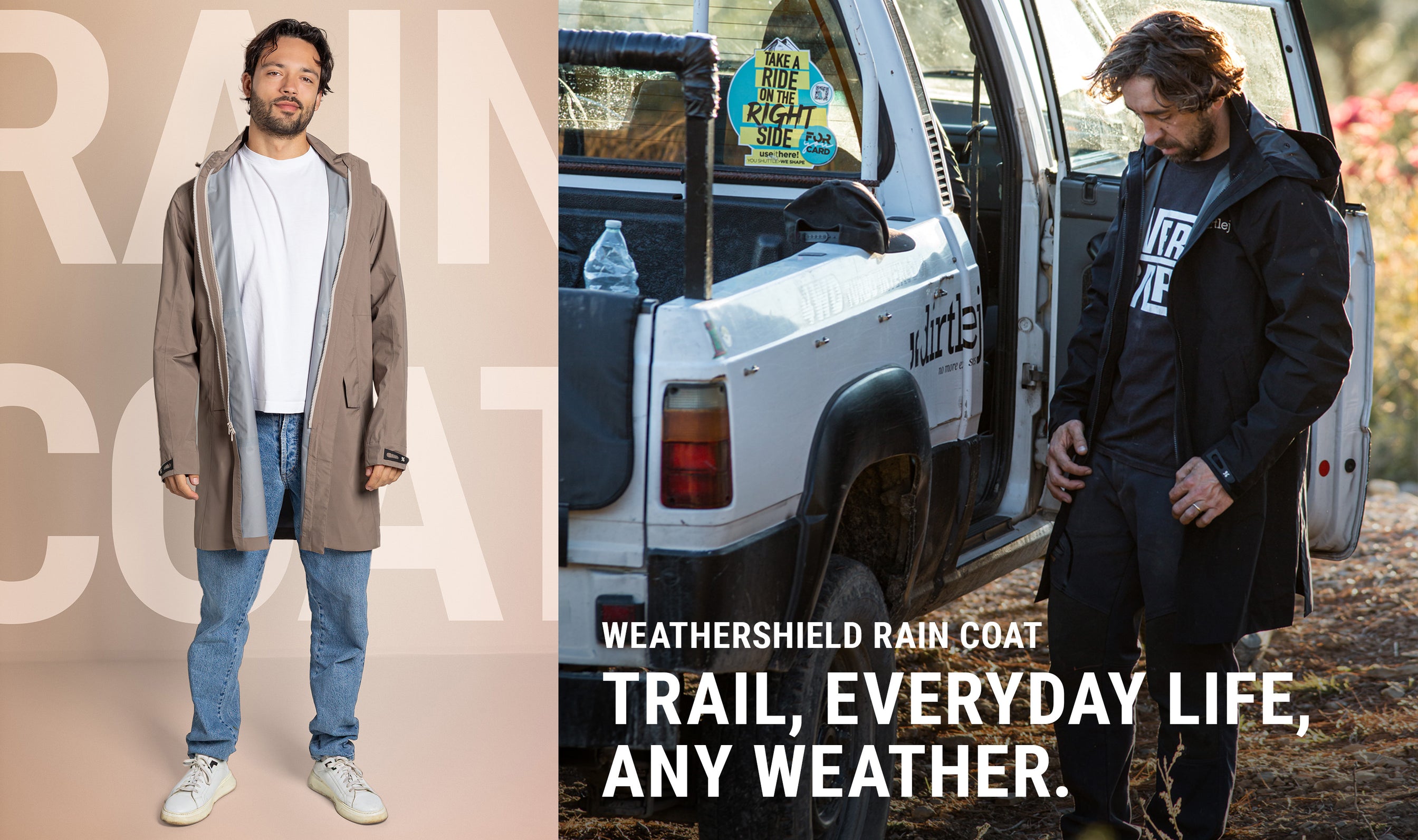 Regenmantel und Fleecejacke: einzeln oder kombiniert. Gemacht für Trail, Alltag und jedes Wetter.